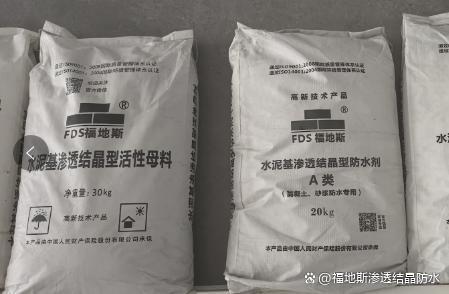 水泥基渗透结晶型防水涂料是一种以普通硅酸盐42.5水泥、80-120目石英砂、FDS水泥基渗透结晶型防水母料等组成。其中,水泥和石英砂是主要基材,其与水反应会产生氢氧化钙,母料中的活性硅无机材料是水泥基渗透结晶涂料的关键组成部分,它们可以在水的作用下与混凝土中的离子发生反应,生成不溶于水的硅酸钙结晶物,这些结晶物在持续反应中大面积繁殖,可以堵塞混凝土中的微小裂缝和孔隙,切断水通道,从而起到防水的作用。