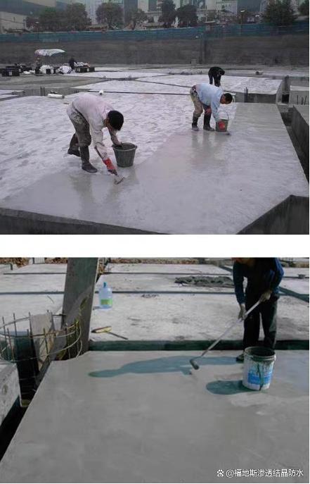 2. 涂刷施工:将水泥基渗透结晶型防水涂料均匀涂刷在混凝土表面,厚度应控制在1-2mm之间。对于特殊部位,如阴阳角、管道口等,应加强涂刷或用刷子仔细涂抹。