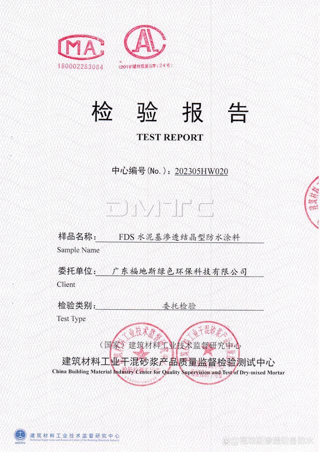 4. 养护:涂刷完成后应保持混凝土表面湿润,但不可有明水。养护时间不少于24小时,以便于水泥基渗透结晶型防水涂料与混凝土表面充分结合。